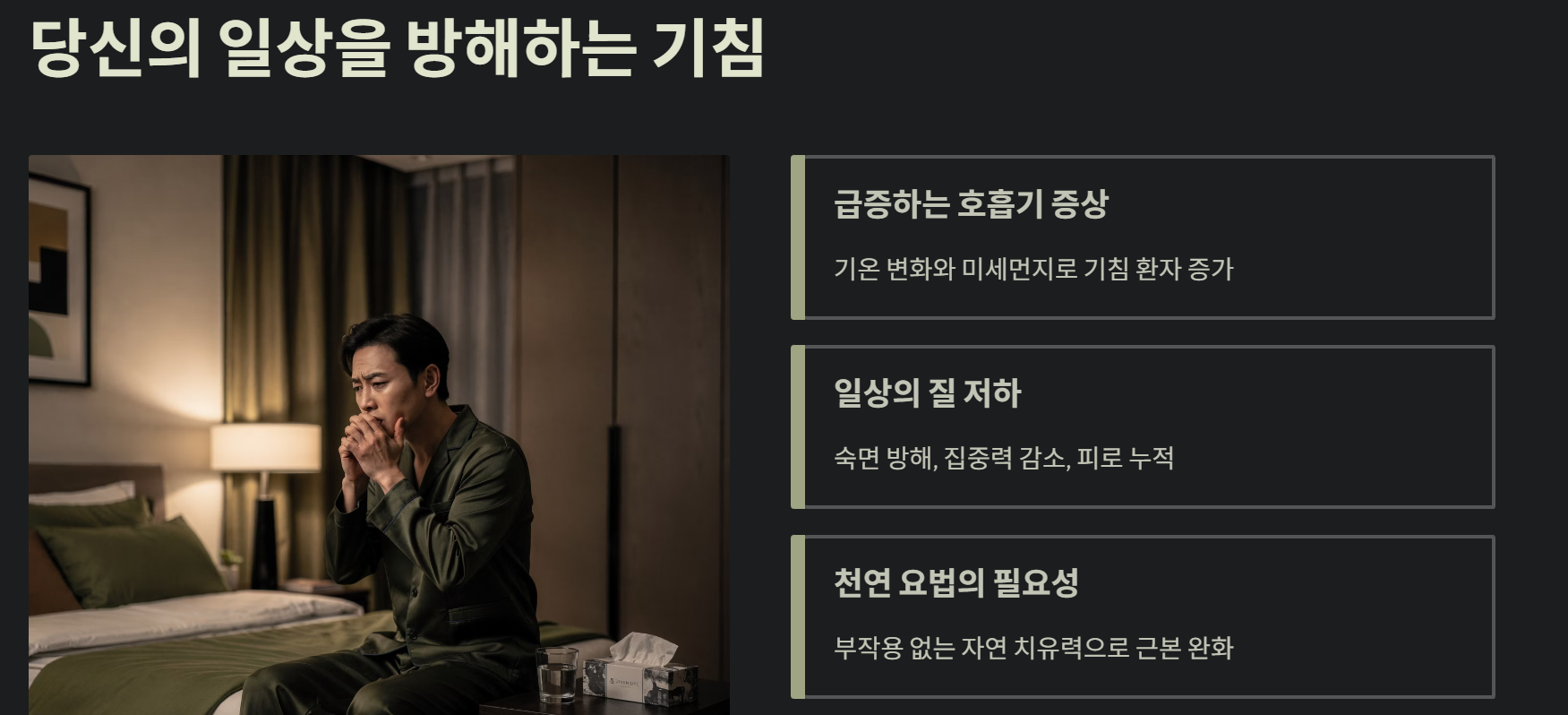 이 글을 끝까지 읽으시면 지긋지긋한 기침에서 벗어날 실질적인 해답을 얻으실 수 있습니다.