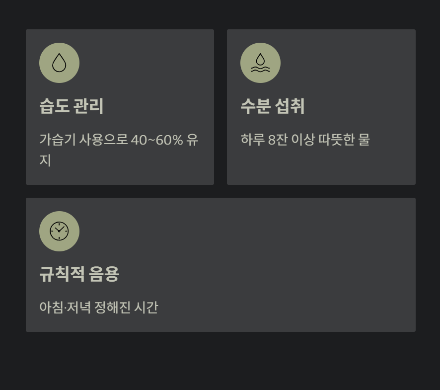 오늘 소개해 드린 도라지, 생강, 모과, 오미자 등은 우리 주변에서 쉽게 구할 수 있는 최고의 천연 치료제입니다. 하지만 차를 마시는 것만큼 중요한 것은 실내 습도를 40~60%로 유지하고 충분한 수분을 섭취하는 생활 습관입니다.