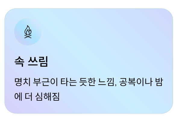 1. 속 쓰림 (쓰리거나 타는 느낌)